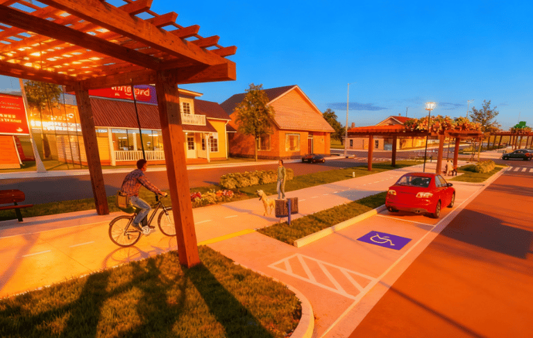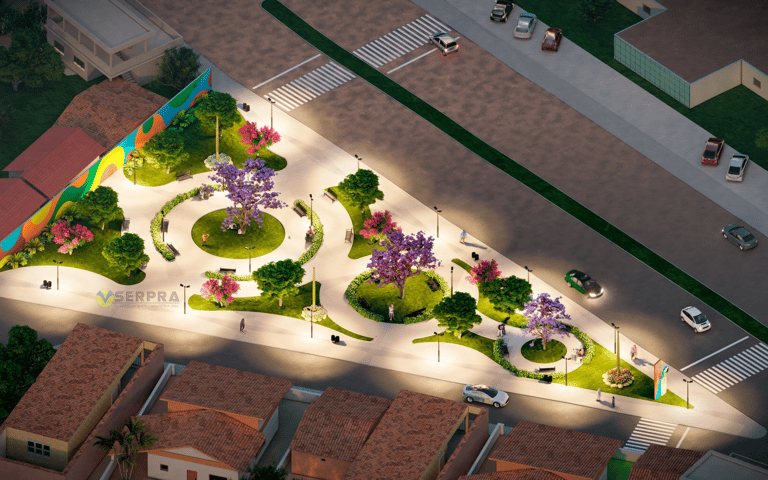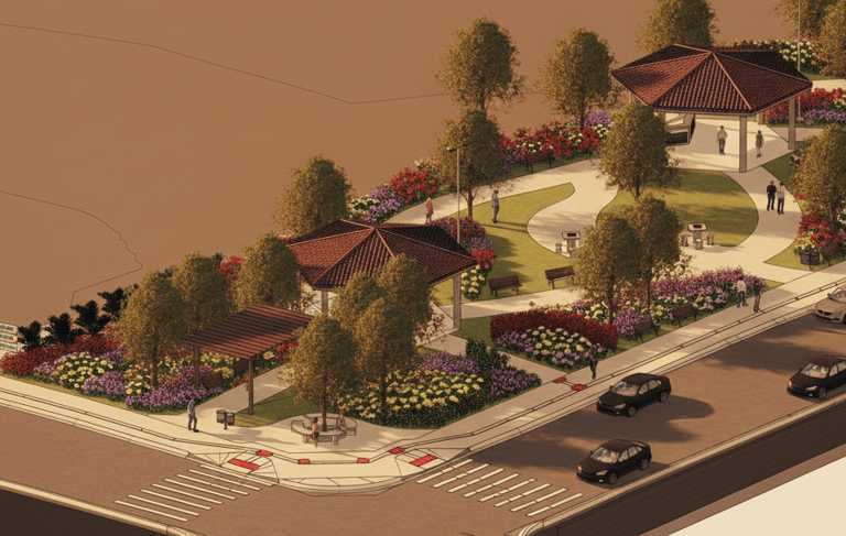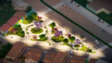 Projetos de urbanização de espaços urbanos.